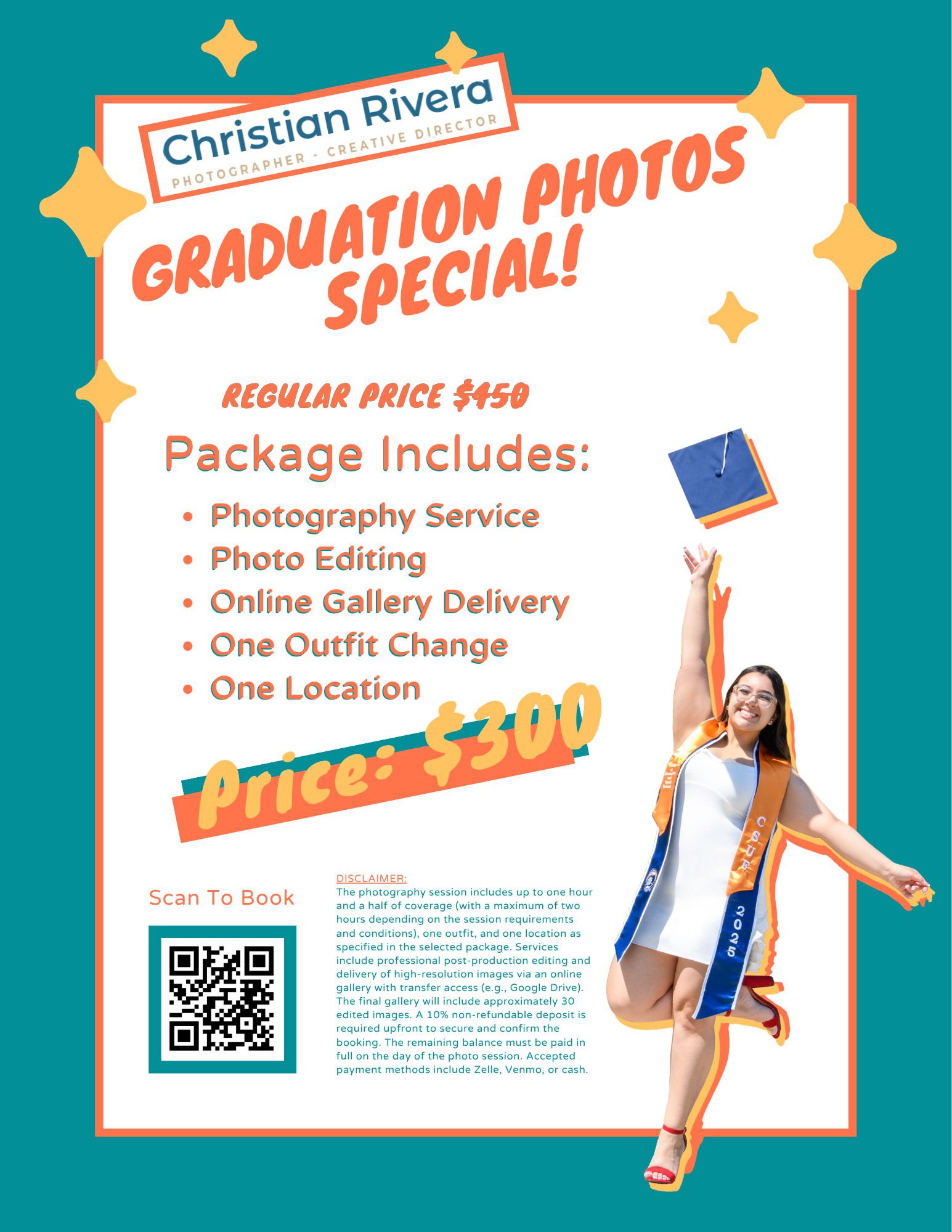 Accepted payment methods include Zelle, Venmo, or cash.